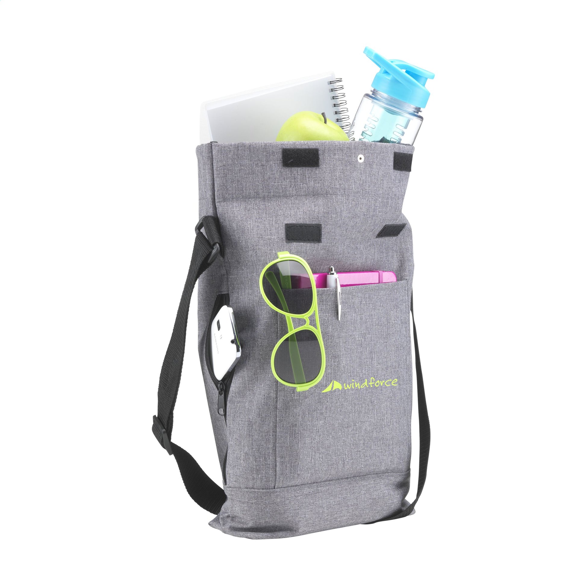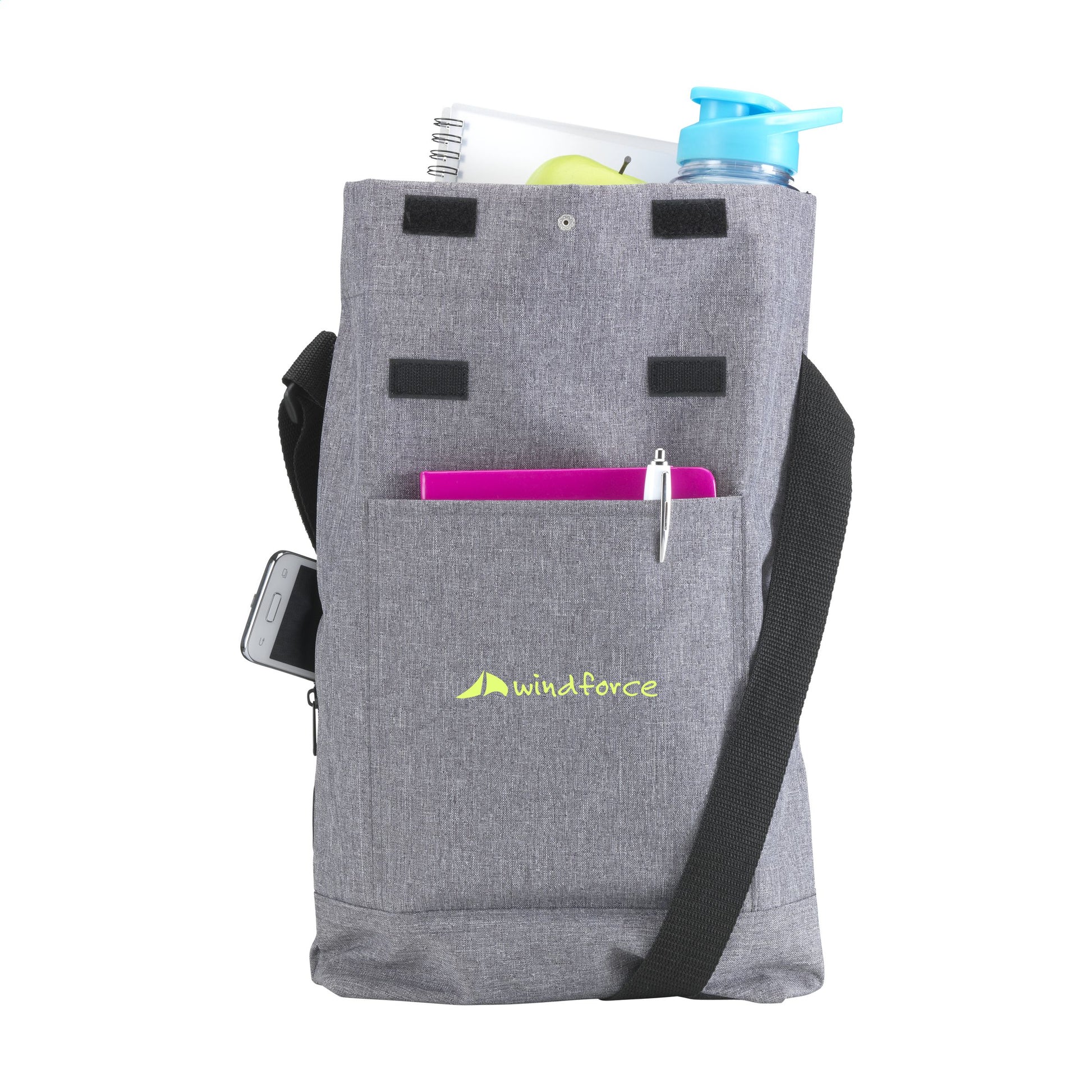Allround-Schulter-/Dokumententasche aus gewebtem 190T Polyester. Hohes Modell mit geräumigem Hauptfach, Fronttasche und verstellbarem Schulterriemen. Schließen Sie die Tasche, indem Sie die Oberseite nach oben schlagen und mit dem doppelten Klett- und Druckknopf-Verschluss fixieren.