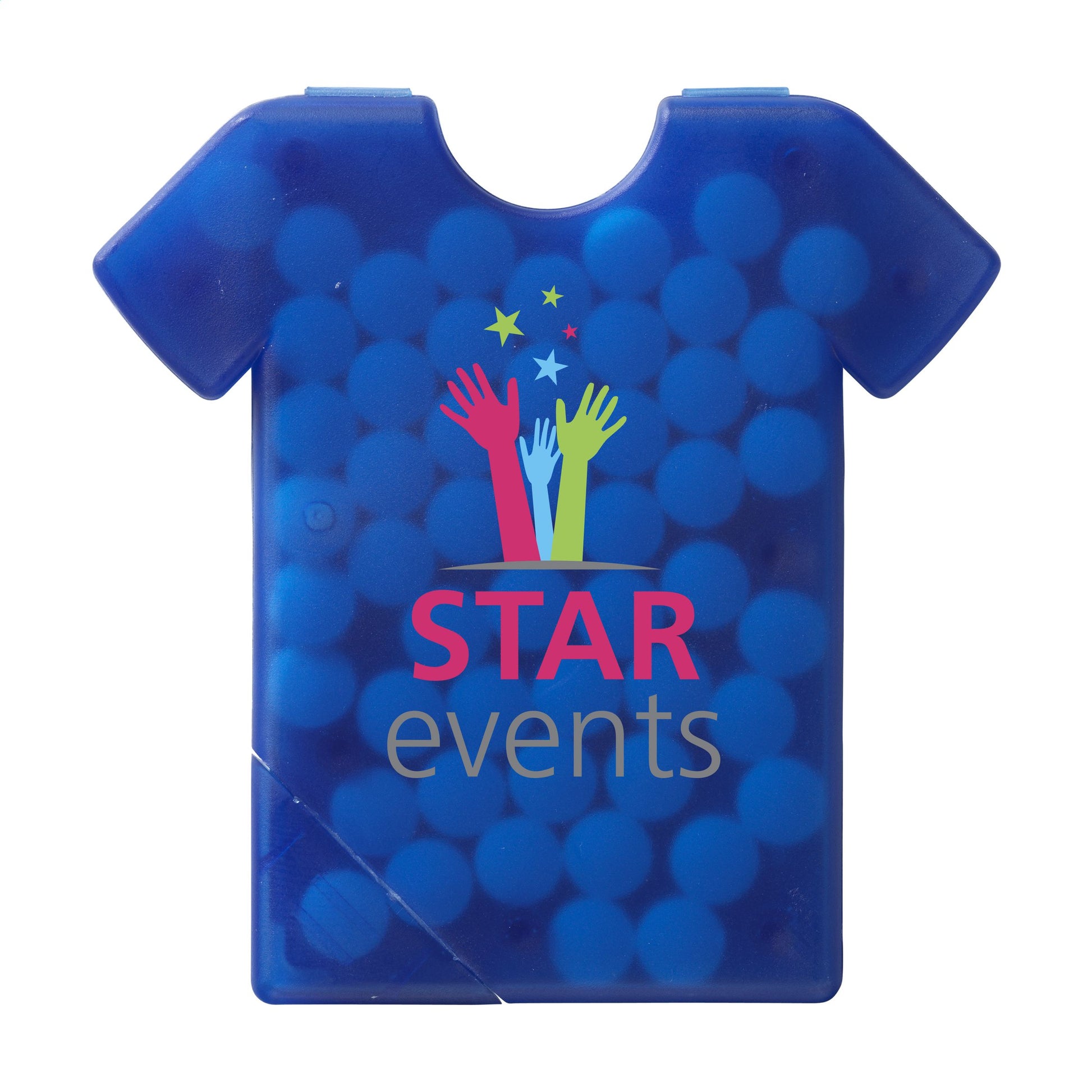 Spender in T-Shirt Form mit ca. 8 g (50 Stück) zuckerfreien Pfefferminz.