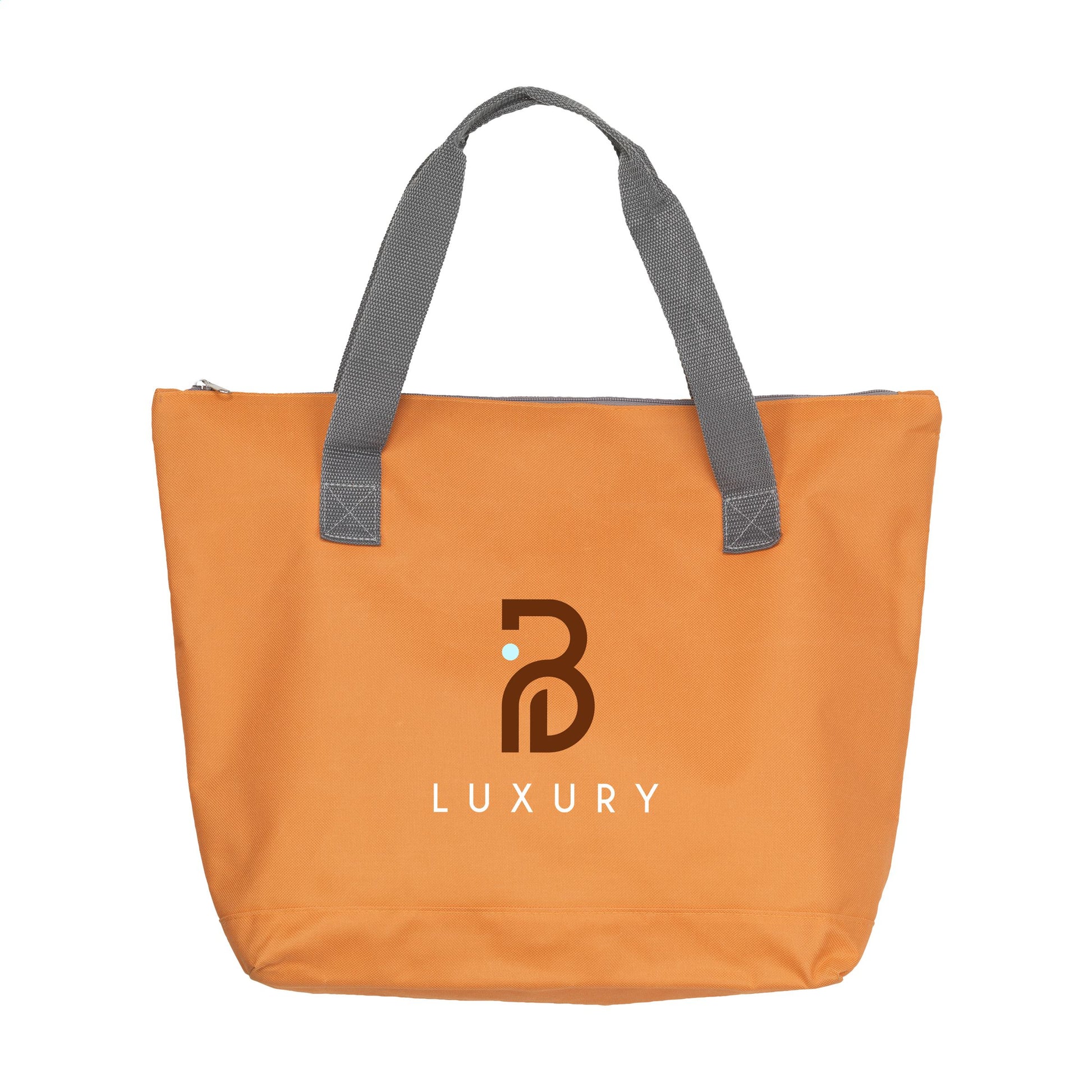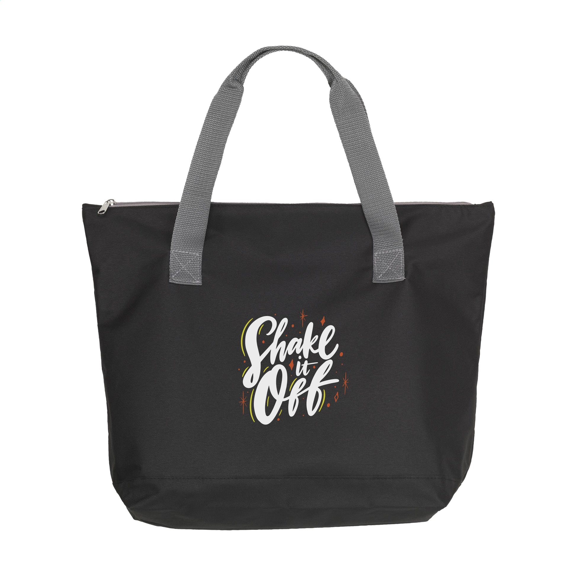 Einkaufstasche aus 600 D Polyester mit Reißverschluss und stabilen Handgriffen.